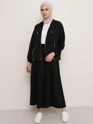 Benin Siyah Kapüşonlu Ceket&Etek İkili Takım