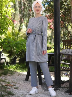 İnşirah İndigo Çizgili Tunik&Pantolon İkili Takım