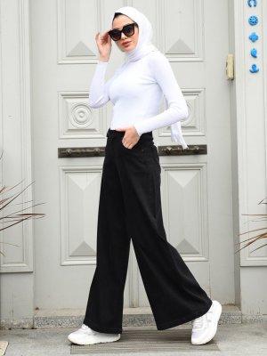 Neways Siyah Bol Paça Pantolon