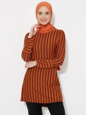 Moda Zenis Karamel Çizgili Tunik