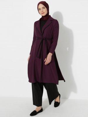 Moda Zenis Mor Şal Yaka Kuşaklı Kap