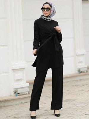 Lavienza Siyah İpek Pantolon&Tunik İkili Takım