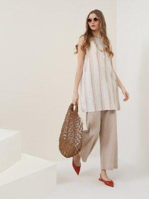 Benin Bej Kum i Doğal Kumaşlı Kolsuz Tunik