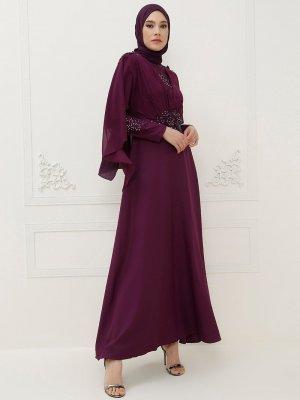 AYŞE MELEK TASARIM Mor Taş Detaylı Abiye Elbise
