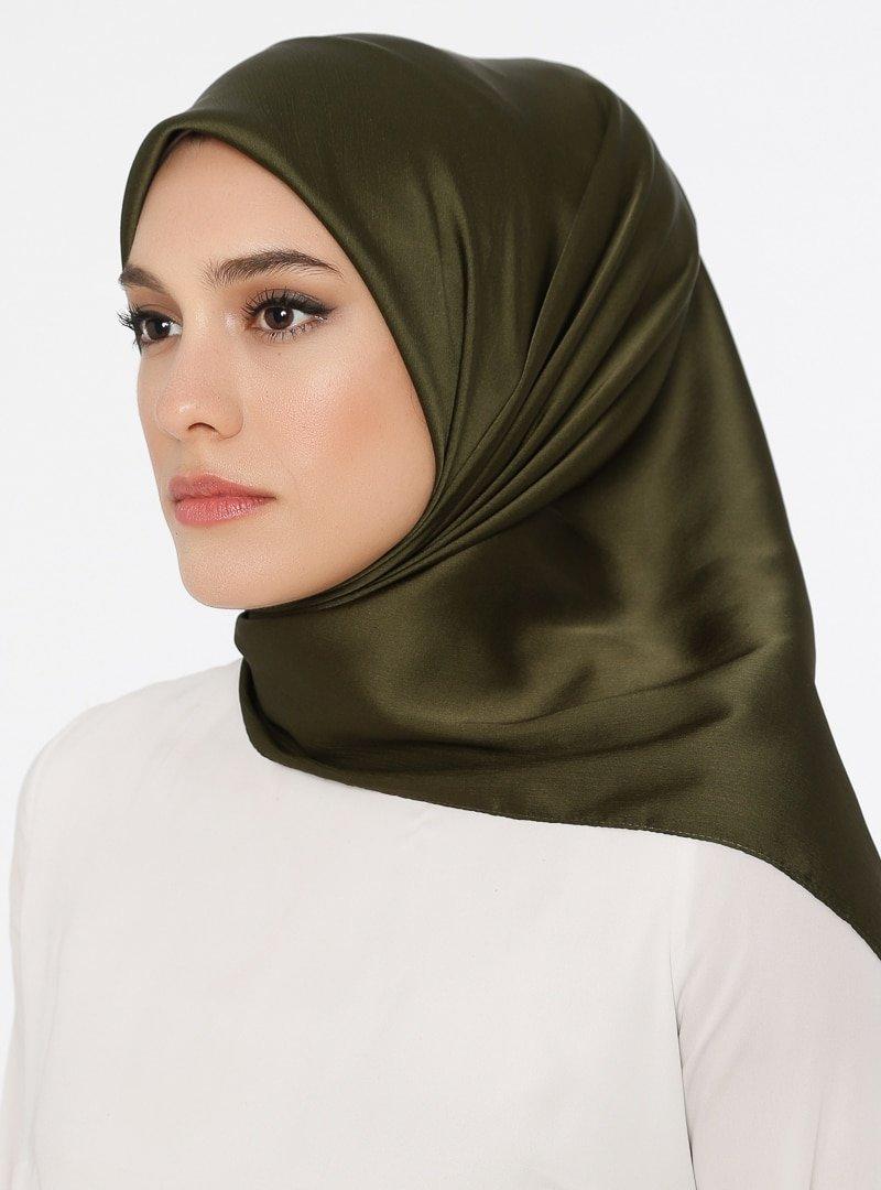 Burden İpek Haki Charm Saten Eşarp