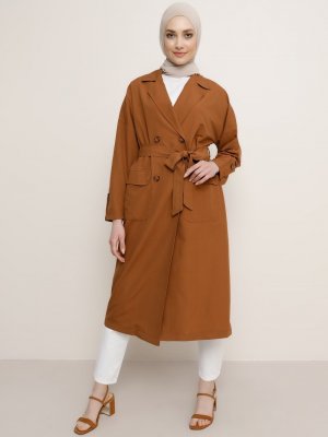 Refka Sütlü Kahve Kolları Düğme Detaylı Trençkot