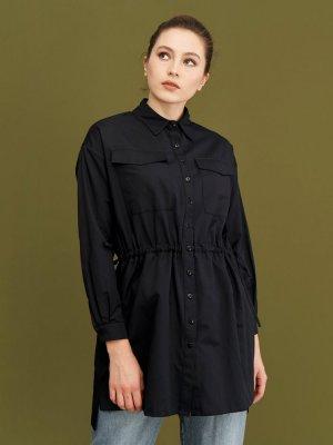 QRAS Siyah Armürlü Beli Büzgülü Tunik