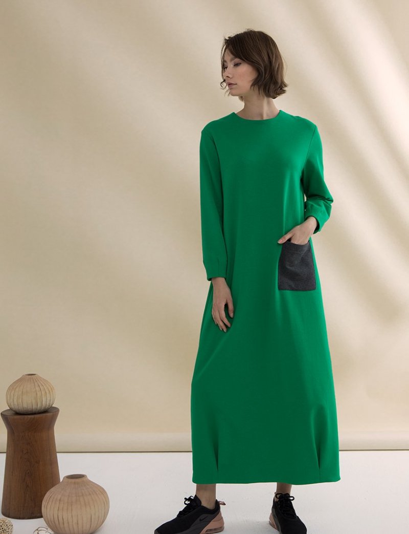 QRAS Yeşil Renkli Cepli Elbise