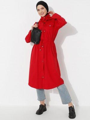 Elfida Kırmızı Beli Bağcıklı Trençkot