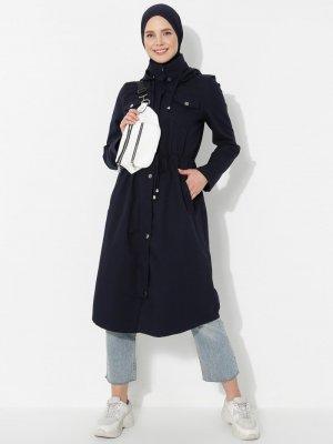 Elfida Lacivert Beli Bağcıklı Trençkot