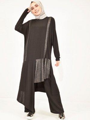 PLİSTRE Siyah Tunik&Pantolon İkili Takım
