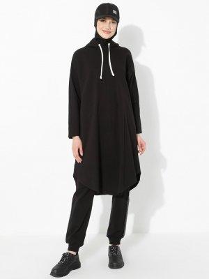 Peker Siyah Kapüşonlu Tunik