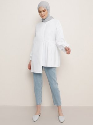 Benin Beyaz Kolları Lastik Detaylı Tunik