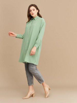 QRAS Yeşil Arkası Pilise Detaylı Tunik