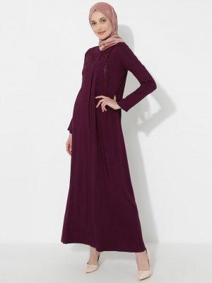 Ginezza Mürdüm Önü İşlemeli Elbise
