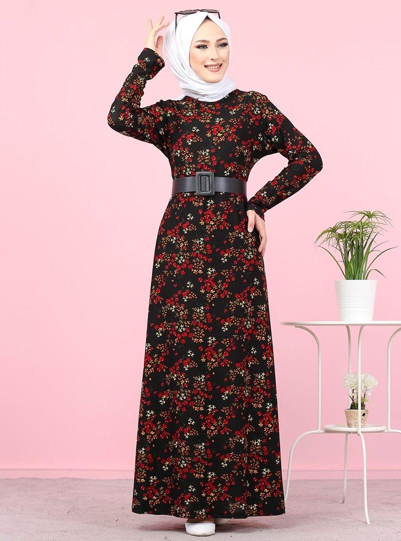 Tofisa Siyah Desenli Elbise