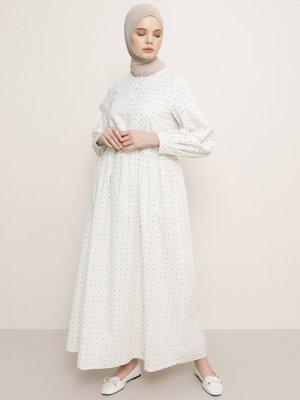 Benin Ekru Bisiklet Yaka Simli Elbise