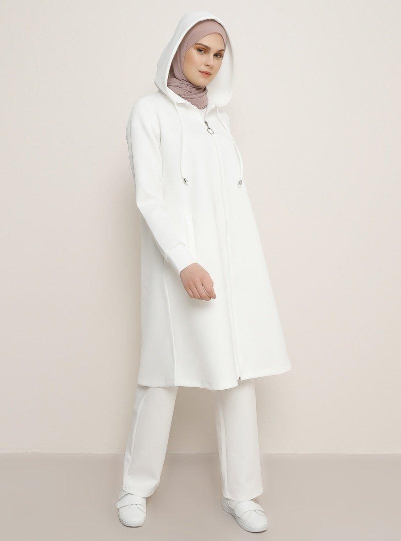 Benin Beyaz Kapüşonlu Kap&Pantolon İkili Takım