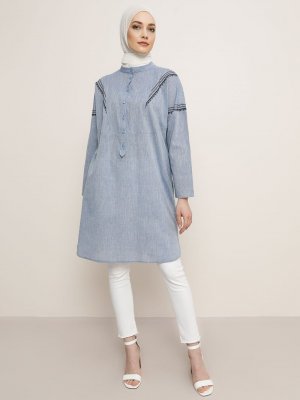 Refka Mavi Nakış Detaylı Tunik