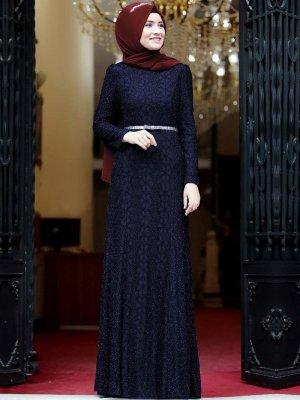 Amine Hüma Lacivert Orkide Abiye Elbise