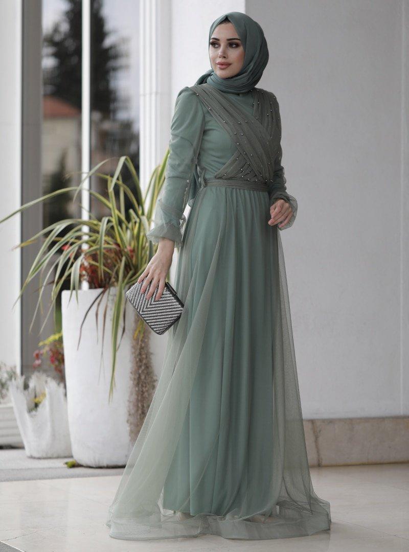 Lavienza Mint İncili Abiye Elbise