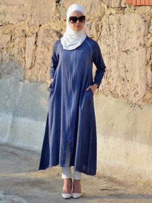 Henna Elısa İndigo Organik Kumaşlı Fermuarlı Ferace