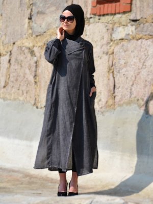 Henna Elısa Antrasit Organik Kumaşlı Ferace