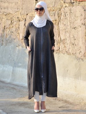 Henna Elısa Antrasit Organik Kumaşlı Fermuarlı Ferace