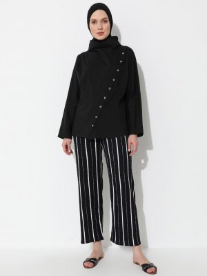 İLMEK TRİKO Lacivert Çizgili Desenli Pantolon