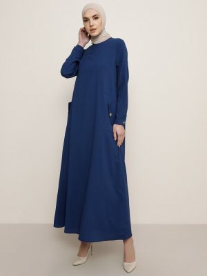 Tavin İndigo Cep Detaylı Elbise