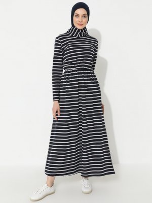 Muni Muni Lacivert Çizgili Desenli Elbise