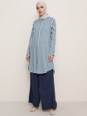 Tavin İndigo Çizgili Viskon Gömlek Tunik
