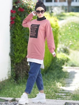 Myzen Gül Kurusu Pamuklu Baskılı Tunik