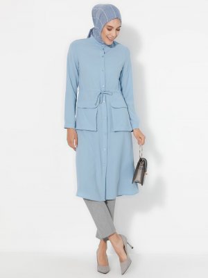 Jamila Bebe Mavisi Belden Büzgülü Çift Cepli Tunik