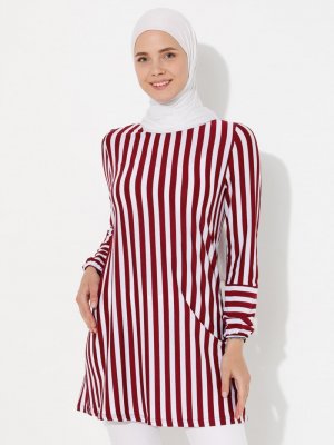 Moda Zenis Bordo Çizgili Tunik