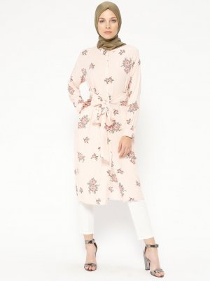 ACR CLOTHİNG Pembe Gizli Düğmeli Desenli Tunik