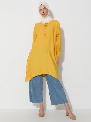 DİLAY MODA Sarı Düğme Detaylı Tunik