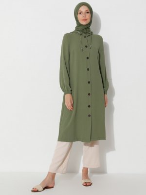 DİLAY MODA Haki Gizli Cepli Kapüşonlu Kap