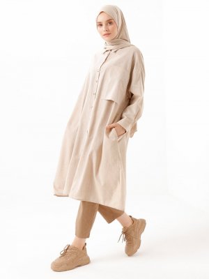 Phull Bej Düğmeli Pamuk Tunik