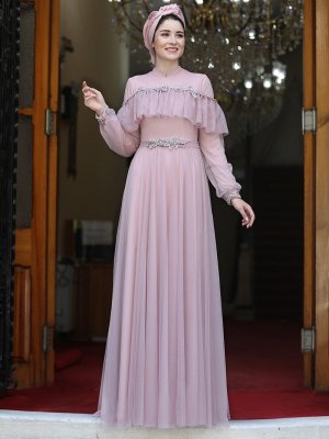 Burak Baran Fashion Pudra Zerafet Abiye Elbise