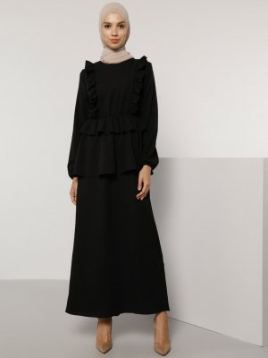 Tavin Siyah Volan Detaylı Beli Lastikli Elbise