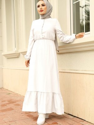 Festmoda Beyaz Eteği Fırfırlı Elbise
