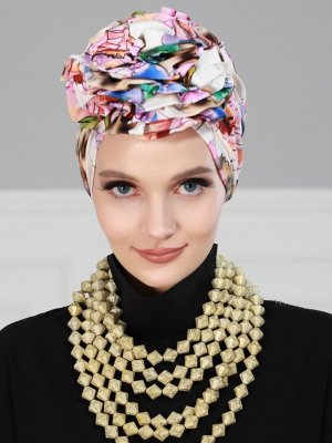 Ayşe Türban Tasarım Mavi Renkli Güllü Penye Bone