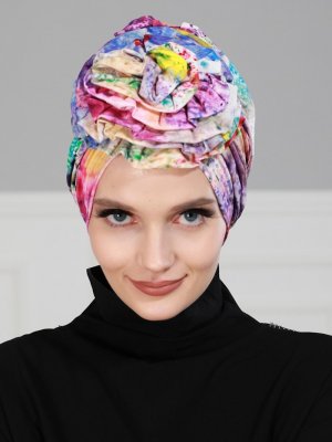 Ayşe Türban Tasarım Mavi Renkli Güllü Penye Bone