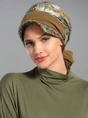 Ayşe Türban Tasarım Haki Şifon Bantlı Siperlikli Bone