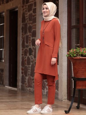 Amine Hüma Kiremit Sultan Tunik&Pantolon Abiye İkili Takım