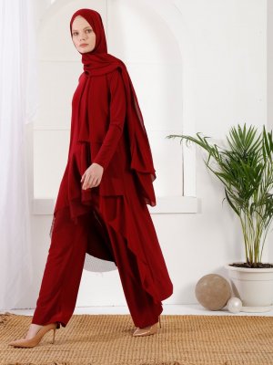 İnşirah Bordo Tunik&Pantolon İkili Takım