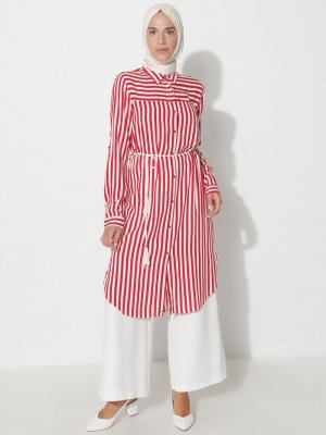 Demirler Bordo Çizgili Tunik