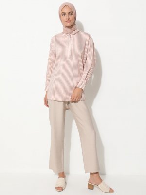 DİLAY MODA Taş Rengi Belden Lastikli Pantolon