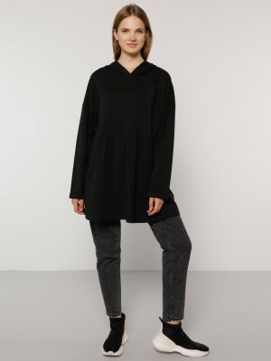 Alia Siyah Doğal Kumaşlı Kapüşonlu Tunik